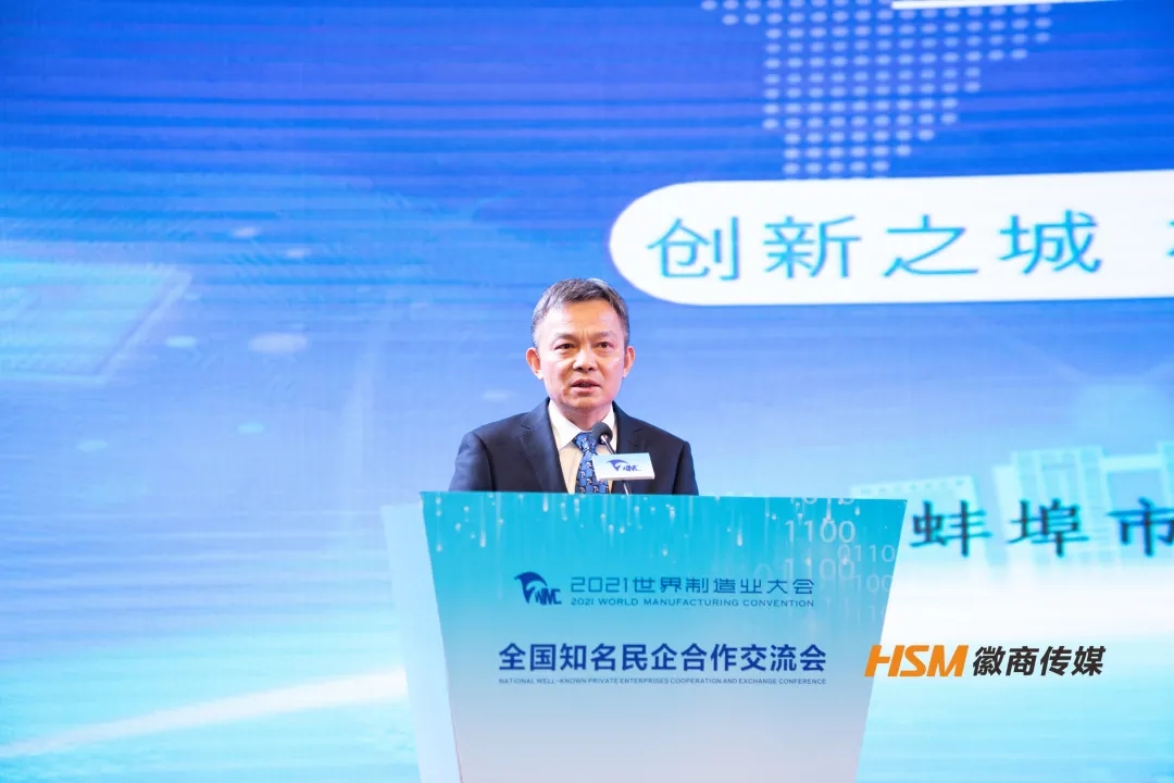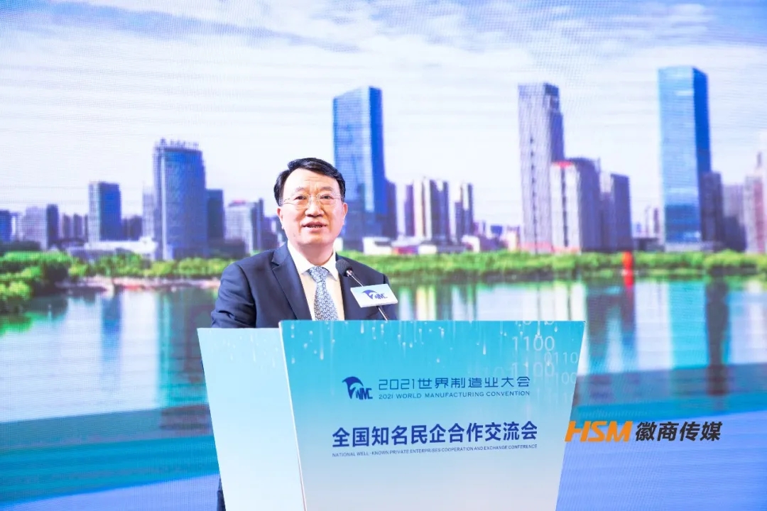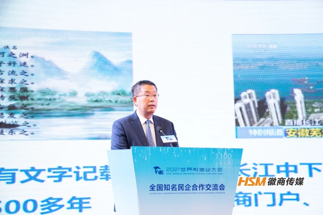 11月19日下午,由全國工商聯、安徽省人民政府主辦,省工商聯、省經濟和信息化廳、省文化和旅游廳承辦,全國工商聯城市基礎設施商會、省發展改革委,合肥、蕪湖、蚌埠市政府協辦的2021世界制造業大會全國知名民企合作交流會在合肥召開。全國工商聯副主席黃榮視頻致辭,省政府副省長、省工商聯主席王翠鳳出席并致辭,會議由省人民政府副秘書長左俊主持。省工商聯副主席劉明平,省工商聯黨組成員、副主席司應武出席會議。安徽省新興產業協會會長、安徽天鷺控股集團董事長姚廣傳應邀參加大會。